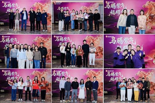 年会晚宴于1月22日在绍兴奥斯登酒店隆重举行。宴会厅灯火璀璨,暖场视频中奔腾的骏马气势磅礴,与“马腾紫气”的年会主题交相辉映,瞬间点燃全场气氛。